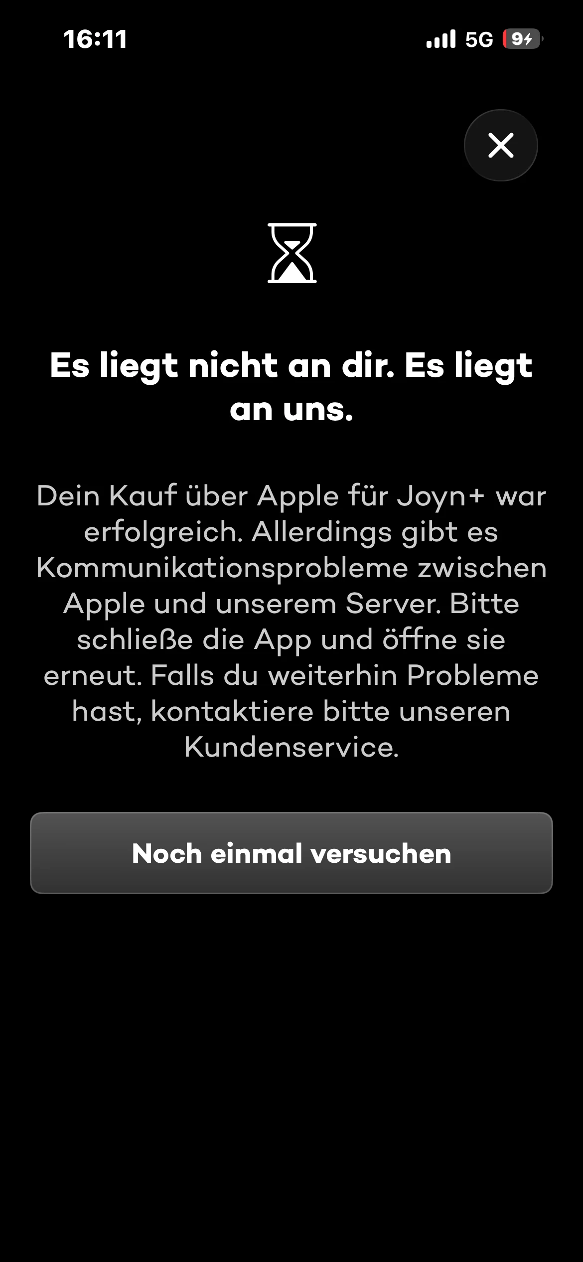 Hallo Team, habe gestern mein Account bezahlt aber + wurde nicht freigeschaltet. Meldung es liegt nicht an Dir sondern an Apple . Was ist zu tun ?