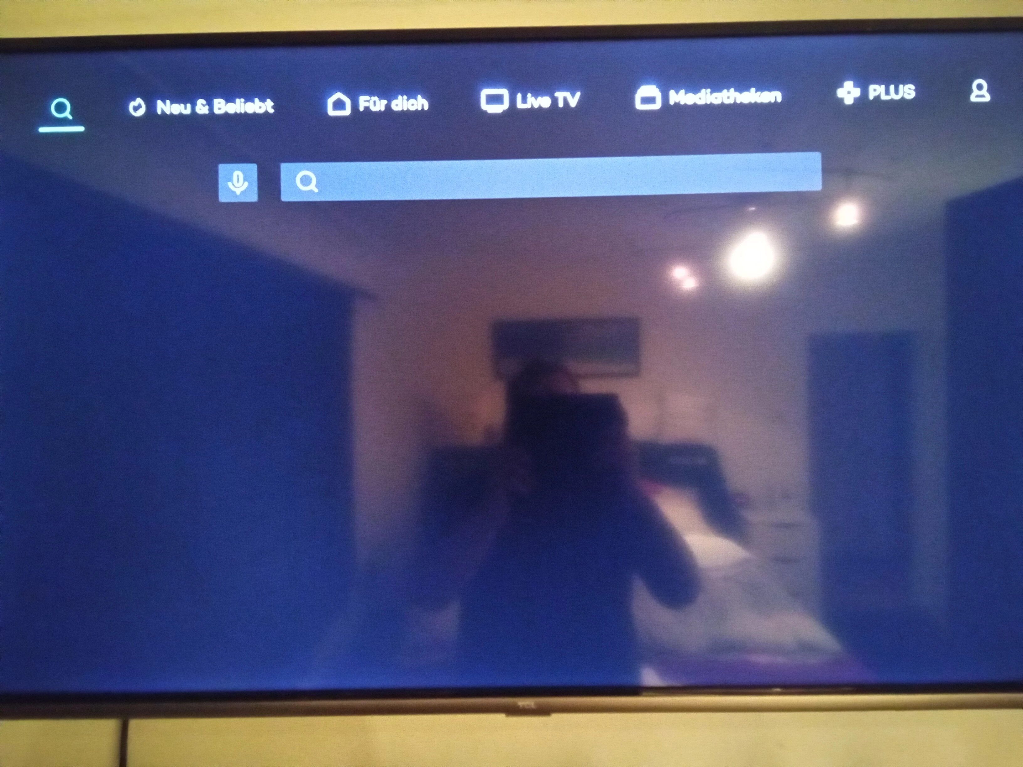 So sieht der Bildschirm bei mir aus. Man kommt nicht in die Suchleiste und es erscheint auch keine Tastatur oder Vorschläge.