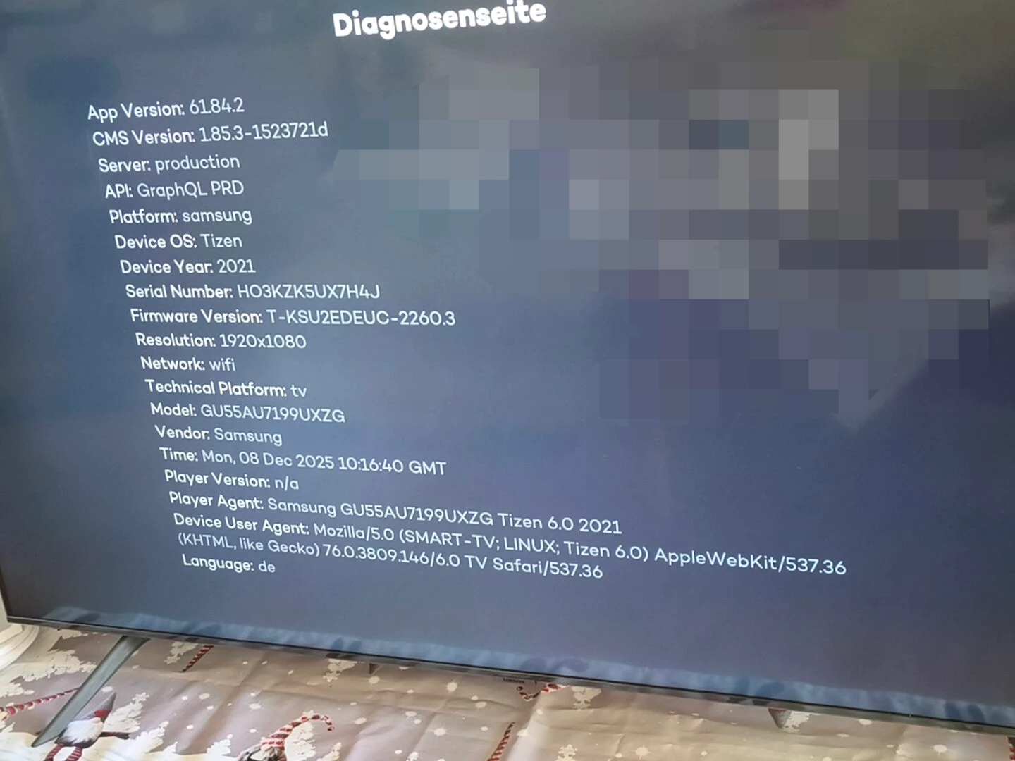 beim Abruf über die App am TV: ein Bild der Diagnoseseite aus der Hilfeseite in der Joyn App