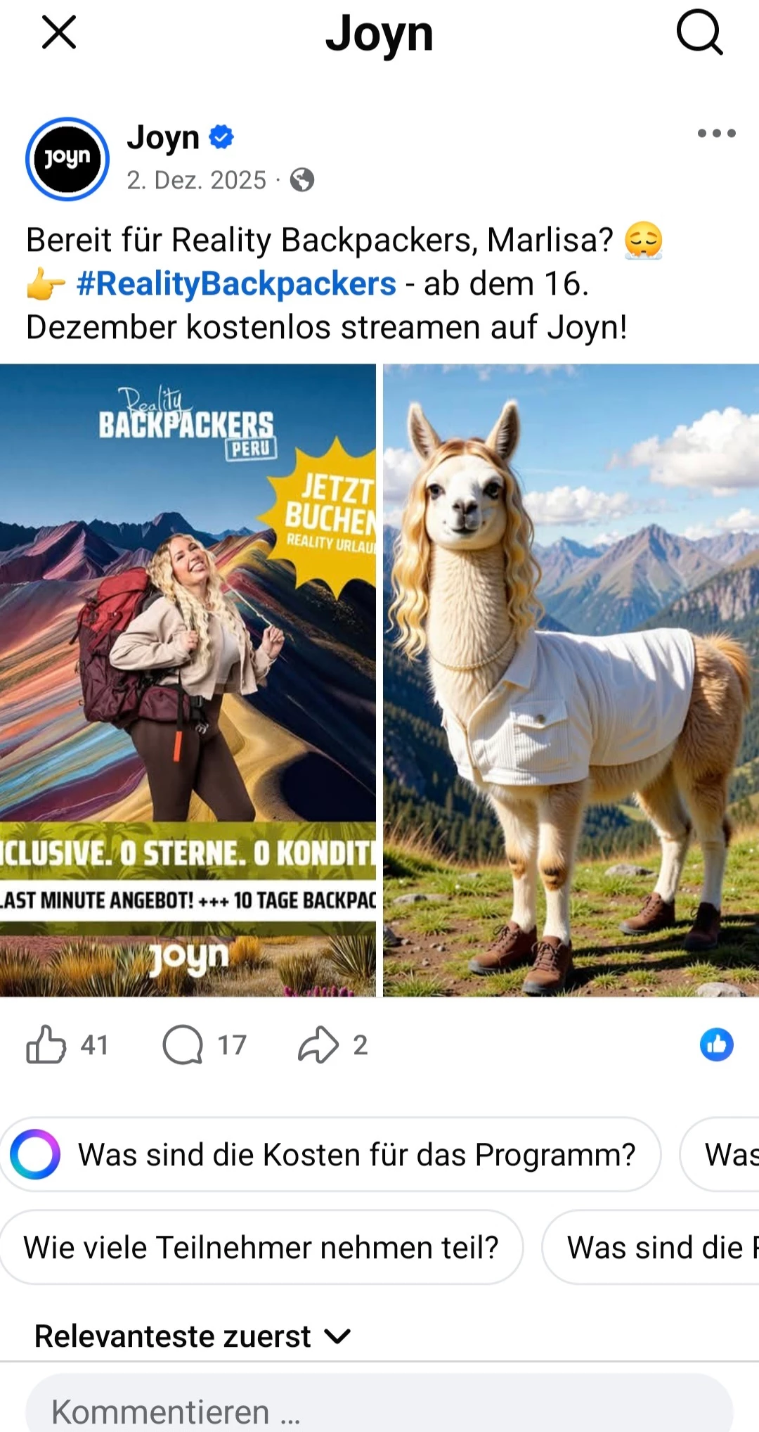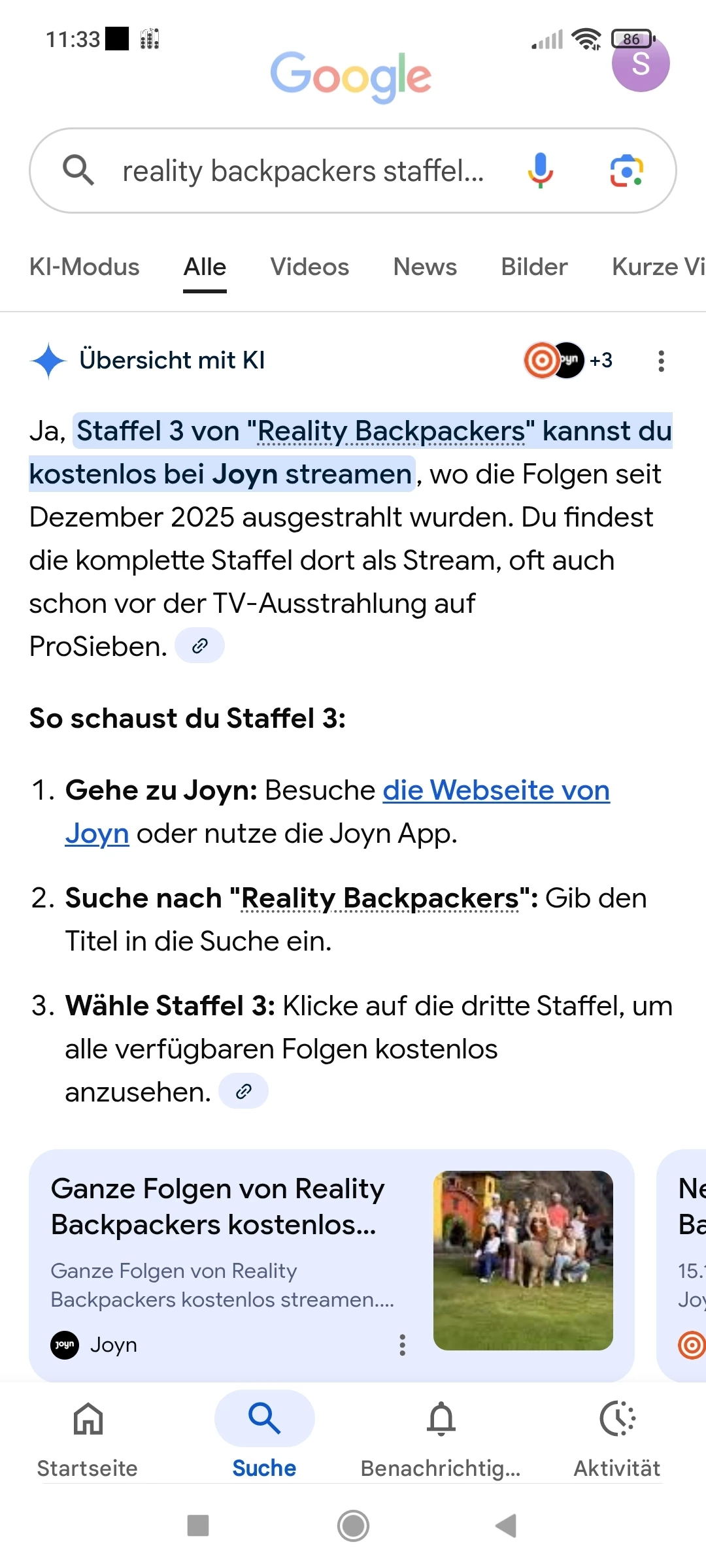 Ich kann die dritte Staffel von Reality Backpackers nicht anschauen.. Bei mir sind die Folgen 1 - 12 bis jetzt nur mit Joyn Plus verfügbar aber kostenlos nicht.. Wieso ist das so? ist das bei noch jemanden so?