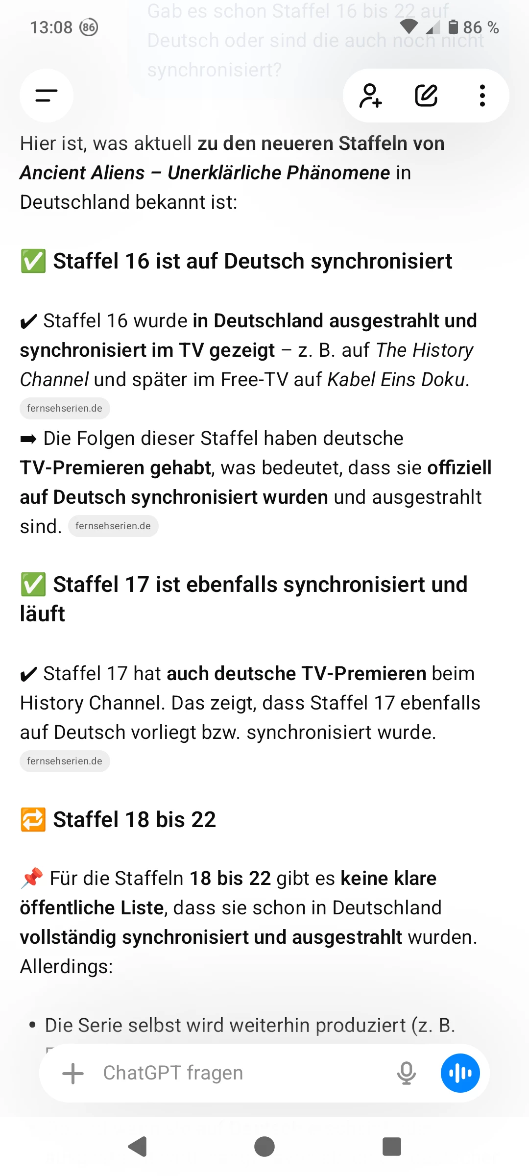 Ich hätte gerne dass es mit Antike Aliens weitergeht denn seit Jahren zeigt ihr nur bis Staffel 15 es gibt Staffel 16 und 17 schon auf deutsch.