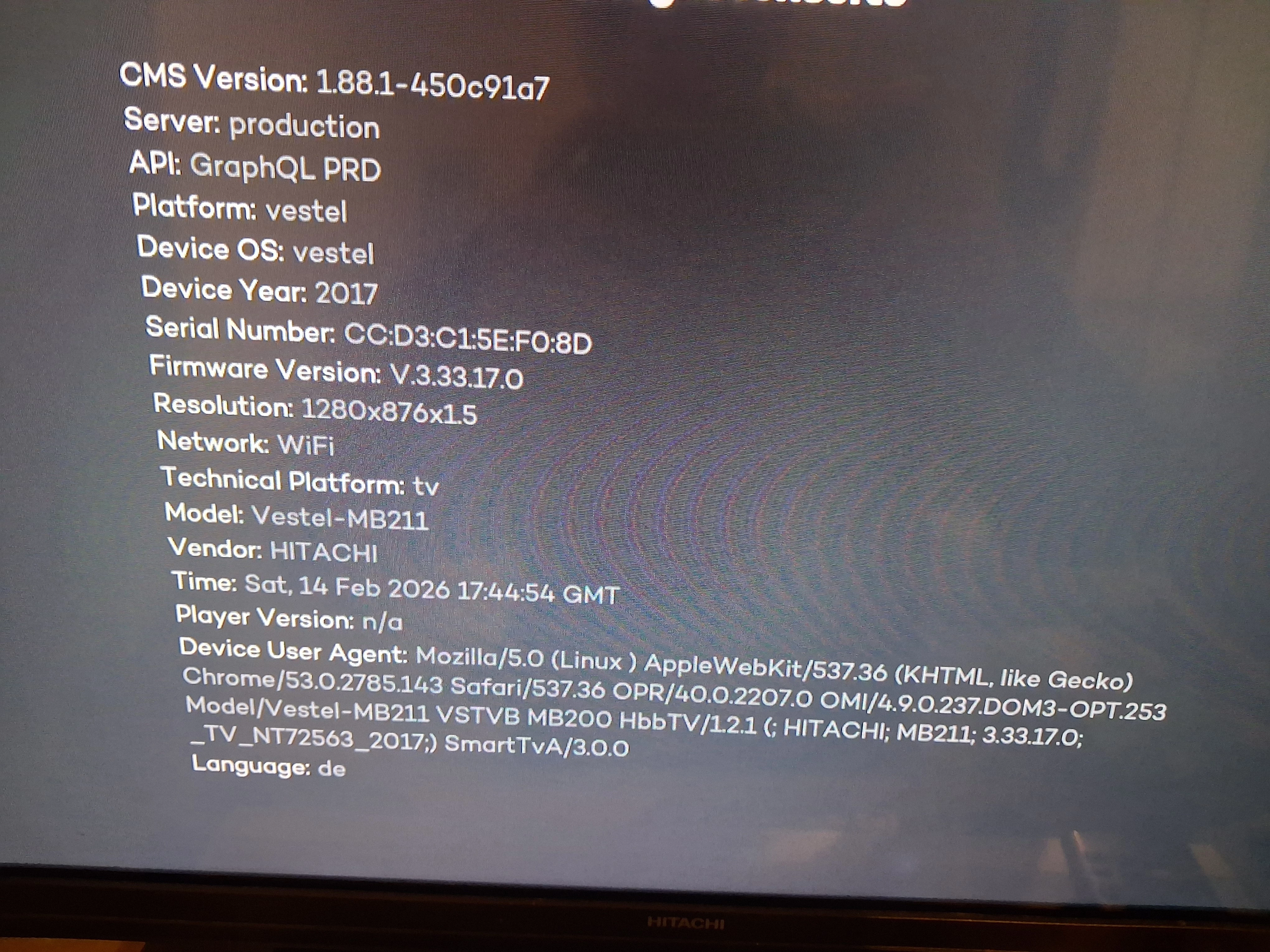 Im Anhang habe ich noch die Diagnoseseite meines Fernsehers.