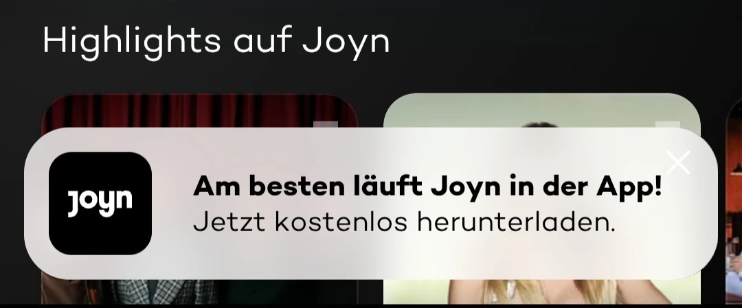- Dort auf das Pop-Up Fenster "Am besten läuft Joyn in der App" klicken