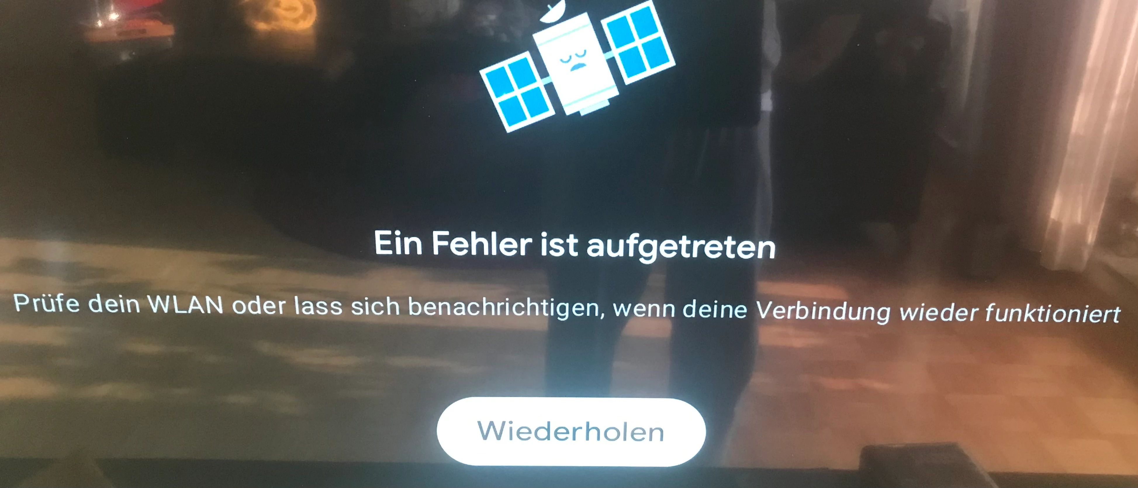 Klick auf „Wiederholen“ führt wiederum zu dieser Meldung. Mein WLAN ist bestens, Netflix und Prime funktionieren reibungslos. Was tun? TV ist eine Philips Android-Kiste.